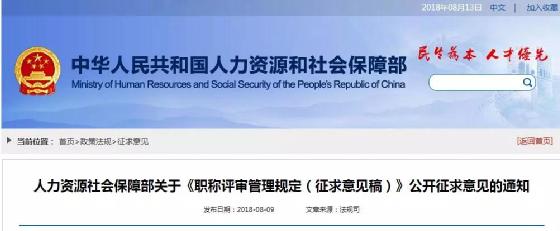 职称评审管理规定(征求意见稿)全文,大家登录人力资源社会保障部官网查看,在此不再赘述。